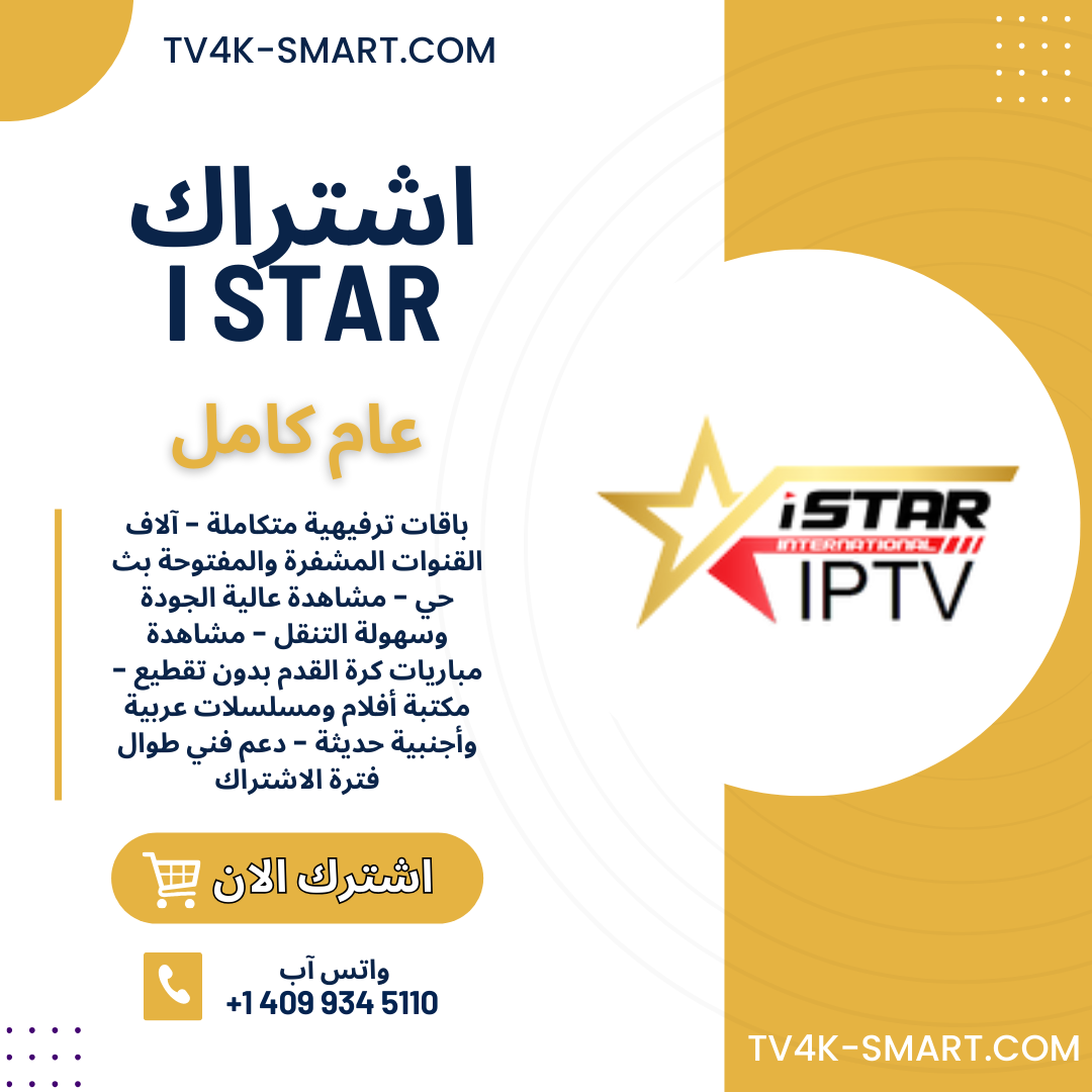 اشتراك اي ستار – اشتراك istar pro لمدة سنة لمشاهدة القنوات والافلام والمسلسلات والذي يُعد واحداً من ضمن أفضل اشتراك قنوات IPTV التي يقدمها متجر تي في سمارت ..