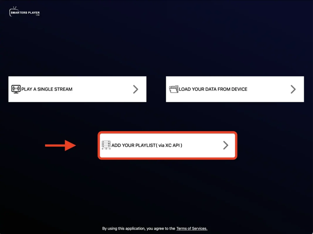 افتح التطبيق واختر خيار ADD YOUR PLAYLIST (via XC API